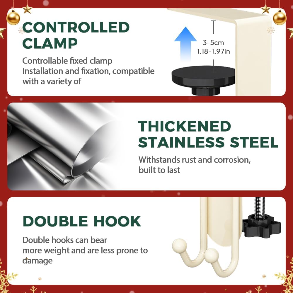 Hassle-Free Installation: No screws, nails, or drilling are required with our easy-to-use garland hangers. The adjustable design fits most right angle fireplaces, accommodating thicknesses of 0.3 to 2.17 inches (10-55 mm), all while protecting your furniture surfaces from damage.