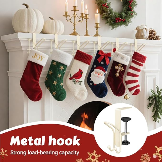 Heavy Duty Construction: Made from premium quality metal, these fireplace stocking and garland hangers are designed to resist rust and scratches while supporting significant weight. Our durable design ensures that your festive decorations stay securely in place without bending or breaking.